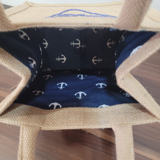 Chelsea Anchor Hand Beaded Mini Jute Tote