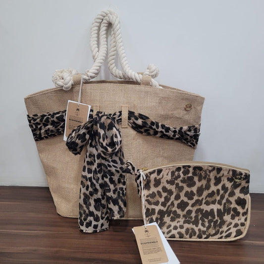 Astoria Leopard Chiffon Jute Travel Pouch