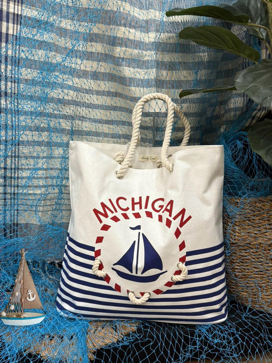 Montauk Sailboat Cotton Canvas Tote Bag